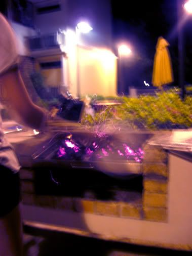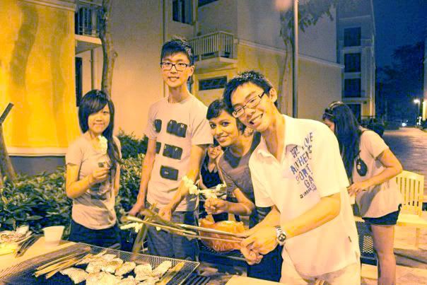 I was toasting marshmellows for my two jiejies, my arm smell like pig roast. :(